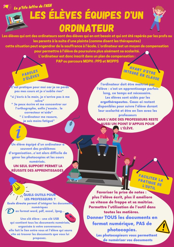 Les élèves équipés d’un ordinateur ou d’une tablette